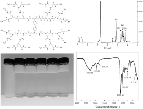 摘要:本发明公开一种聚酰胺‑胺类超支化聚合物及其制备方法和应用,涉及石油添加剂技术领域。本发明的聚酰胺‑胺类超支化聚合物是以4,4'‑二氨基二苯甲烷为反应中心,端基为胺基的聚酰胺‑胺类超支化聚合物。本发明的制备方法简单,包括如下步骤:4,4'‑二氨基二苯甲烷与丙烯酸甲酯在常温条件下反应24h制备以4,4'‑二氨基二苯甲烷为核的0.5G酯;再加入化学计量比的乙二胺和丙烯酸甲酯,通过常温反应、分段升温反应等步骤制备得到具有超支化结构的聚酰胺‑胺破乳剂。本发明的聚酰胺‑胺类超支化聚合物作为破乳剂,在50~70℃条件下可对水包油乳液进行快速破乳,实现油‑水有效分离,破乳剂用量在50mg/L时破乳效率可达到99.5%,具有破乳速率快,用量少以及破乳效率高等特点。