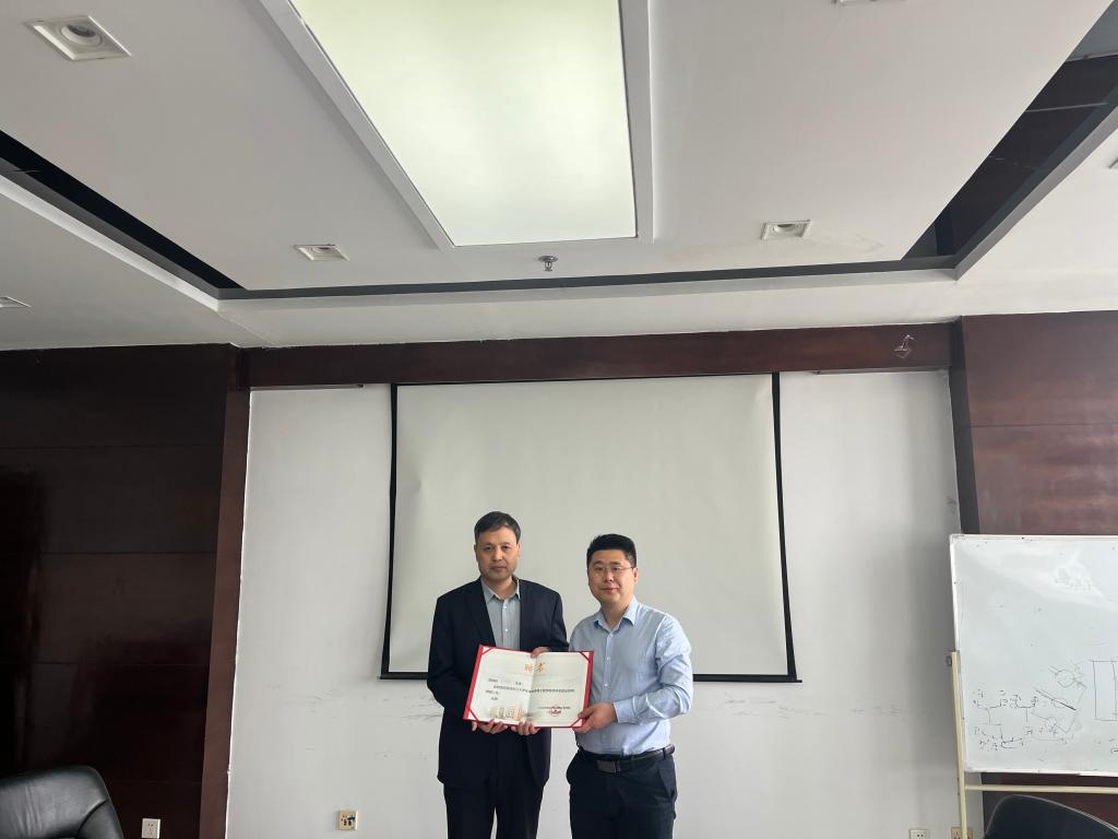 杨会军副书记则围绕学院基本情况、校企合作成果及毕业生就业工作推进情况进行了全面介绍,阐述了此次访企拓岗的目标与愿景。随后,双方围绕人才培养与企业实际需求的精准对接、深化毕业生就业合作等议题展开深入交流与探讨。为进一步加强校企联动,学院聘请东明石化集团总经理刘忠华,人力资源经理李璐、林啸雨为本科生职业导师,杨会军副书记现场为受聘企业领导颁发聘书。