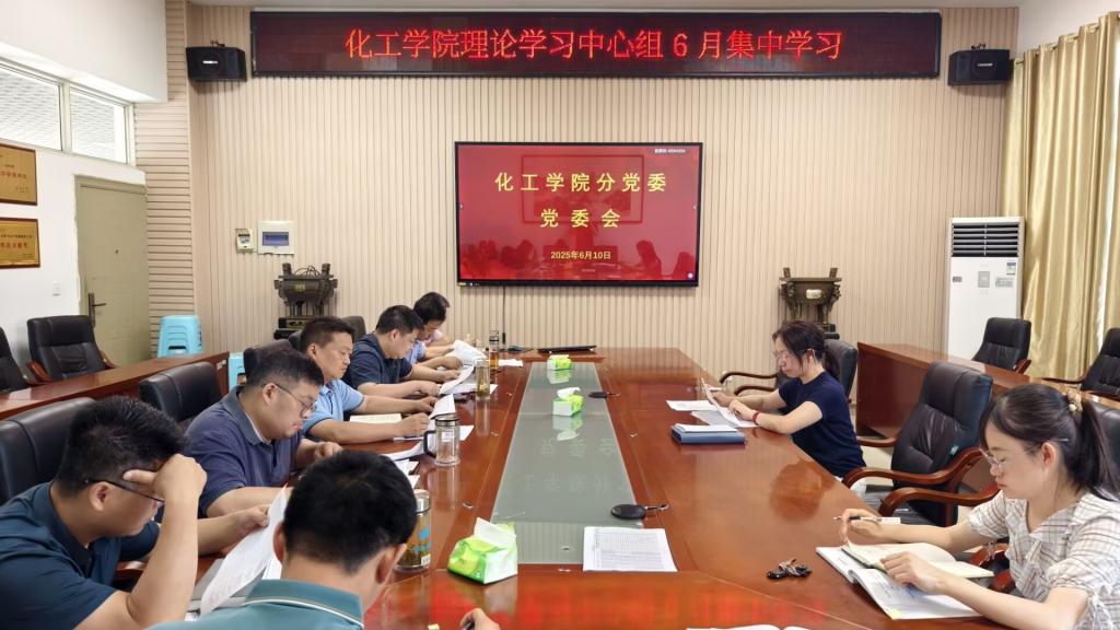 6月10日上午,化工学院党委理论学习中心组在14教西303会议室举行6月份集中政治理论学习会。学院党委书记王丽主持会议,中心组全体成员参加学习。