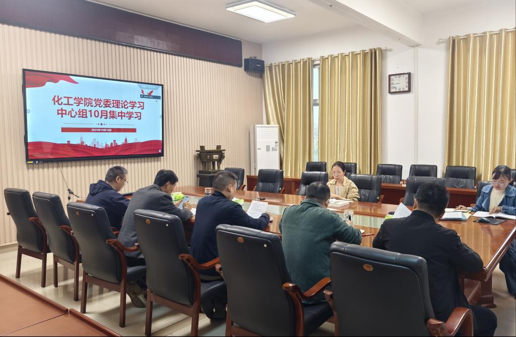 2025年10月16日上午,化工学院党委理论学习中心组在14教西303会议室开展10月份集中政治理论学习。会议由学院党委书记王丽主持,中心组全体成员参加。