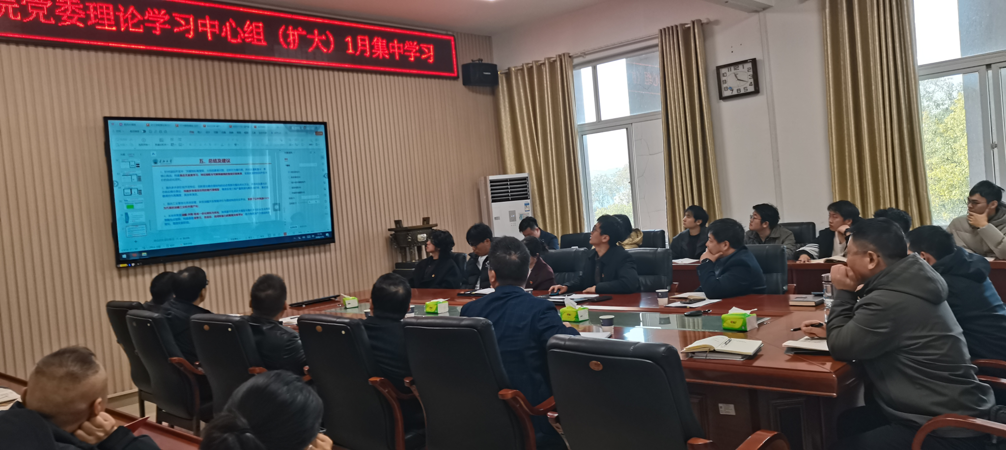 随后,会议集中学习了近期重要会议和文件精神。副院长谷惠文领学习近平总书记在中央经济工作会议上的重要讲话精神;院长赖璐领学《学习好贯彻好党的二十届四中全会精神》重要文章;党委副书记杨会军传达中共中央政治局关于党风廉政建设和反腐败工作的最新部署;院长助理黄河领学2026年湖北省科技创新大会精神。