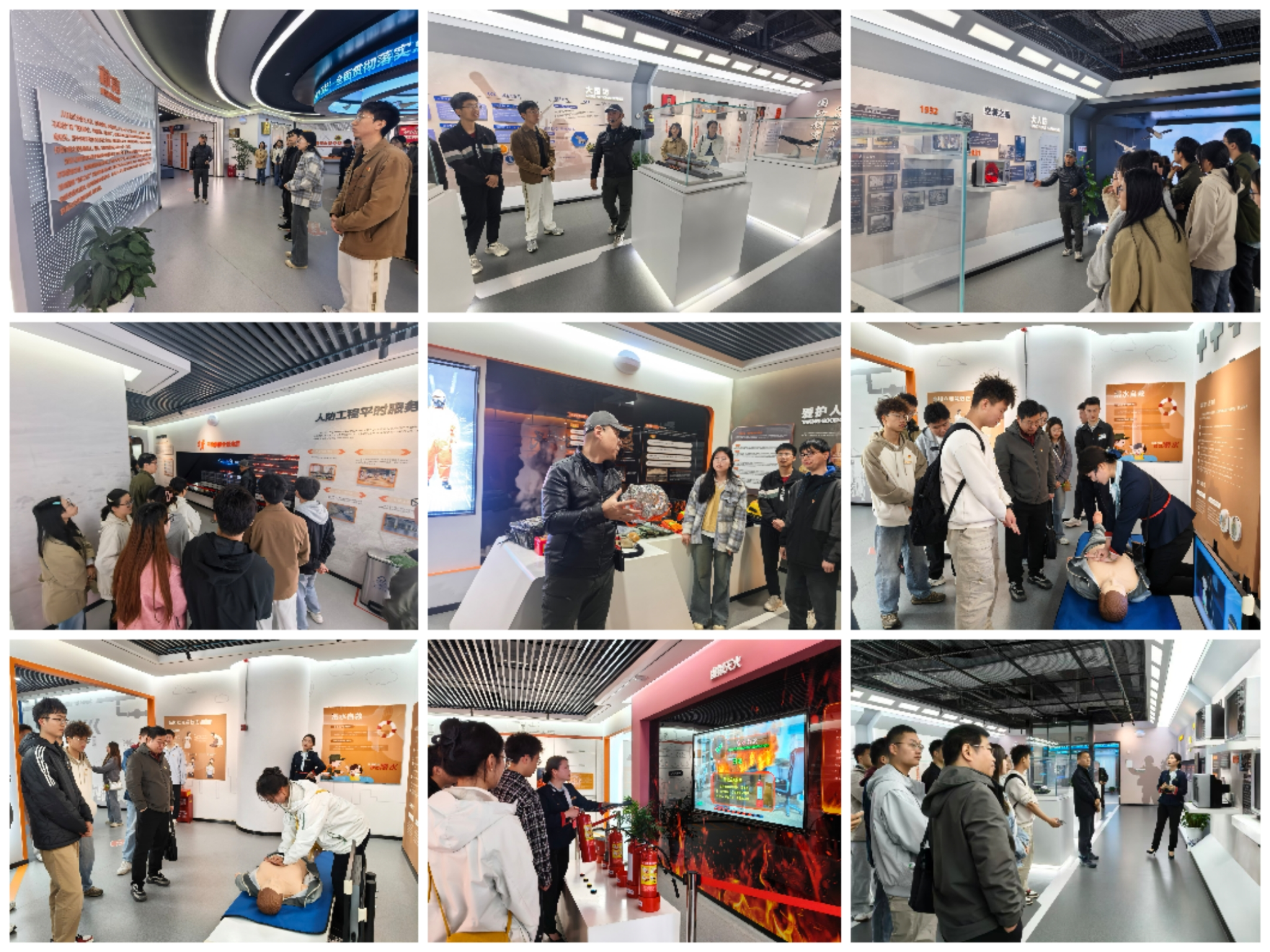 随后,大家走进荆州人防展示区,详细了解了荆州人防工程的建设历程、发展现状和工作成效,直观认识到人民防空在城市防护、应急救援中的重要作用。在互动学习环节,讲解员围绕防空警报识别、紧急疏散流程、避险注意事项等内容进行了细致讲解,还现场演示了消防安全逃生技巧和心肺复苏等自救互救基本操作。党员们认真聆听、动手实操,切实掌握了应急避险和自救互救的实用技能。活动最后,全体人员共同观看了防空防灾宣传片,通过沉浸式学习,进一步增强了忧患意识和防范意识。