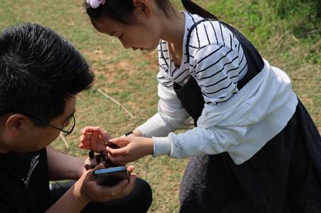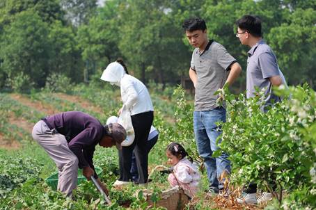 活动现场,大家分组参与特色农事体验。在樱桃种植区,老师们手提竹篮,漫步于繁茂的果林间。他们动作娴熟,轻轻一捻,颗颗红润饱满的樱桃便落入篮中,宛如一幅悠然的田园采摘图。在桑葚采摘区,串串紫色果实挂满枝头,散发着诱人的果香。教职工们一边品尝着酸甜可口的桑葚,一边欢快地采摘,欢声笑语在林间回荡,处处洋溢着丰收的喜悦。