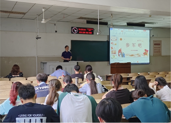 5月18日下午,化工学院在12教202开展2023年秋季征兵宣讲活动,全院学生通过线下或线上方式参加会议。
