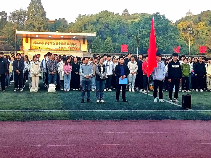 (通讯员 龙怡 粟灿)10月23日7时,yl88858永利中国在东校区田径场举行秋季学期升旗仪式。学院党委副书记杨会军,学工办主任刘敬敏,辅导员严瑾、周学素和2021级、2022级本科生参加升旗仪式。