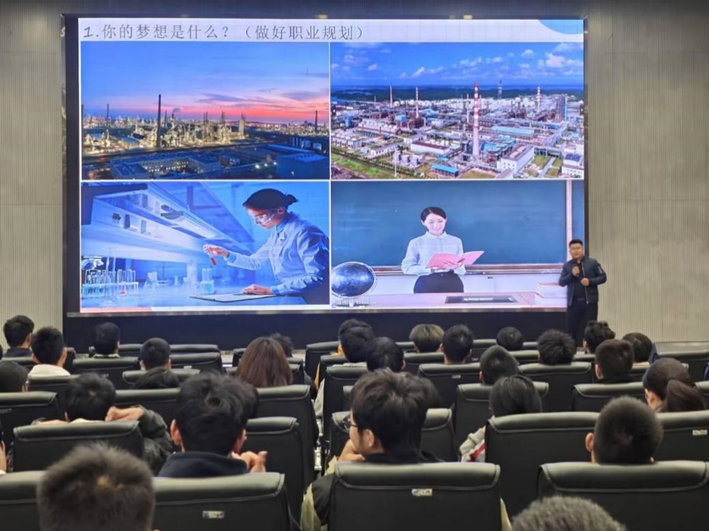 报告开始,杨书记通过“你的梦想是什么”这个问题引出与化学相关职业的细致介绍,同时也为同学们做了简单的职业规划讲解。随后,杨书记介绍了化工学院各专业的课程安排,通过毕业生考研情况、学生英语四级情况等一系列数据阐述了大学保持良好学习目标和正确学习态度的重要性。同时指出大学生不仅仅在学习方面有所提升,还应该注重人际交往,学会欣赏他人、赞美他人,提高自己的综合技能,保持身心健康,坚持体育锻炼。他介绍了荆州历史文化和风土人情,希望同学们能够快速了解荆州、融入荆州。