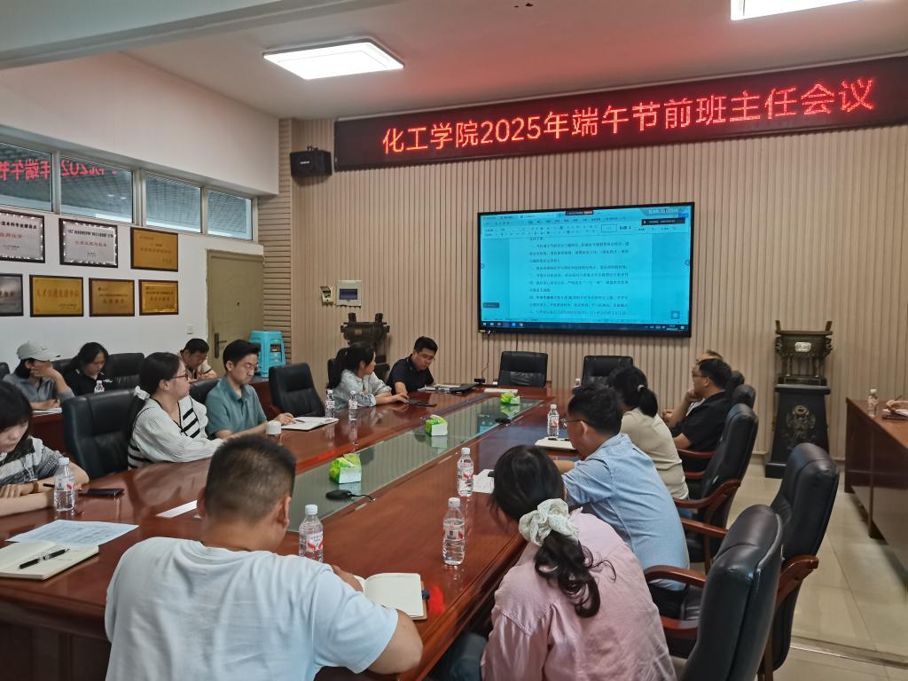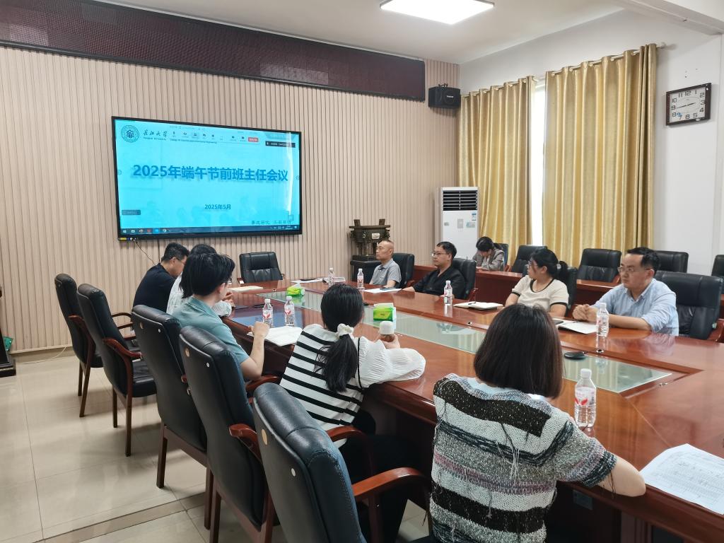 (通讯员 王陈)为进一步强化学生教育管理工作,筑牢学生安全管理防线。化工学院于2025年5月23日下午在14教西303会议室召开端午节前班主任工作部署专题会议。学院党委副书记杨会军、全体辅导员、班主任参加会议,重点围绕假期端午节前安全管理、防溺水专题工作、毕业生文明离校及分层分级教育等关键工作进行部署。