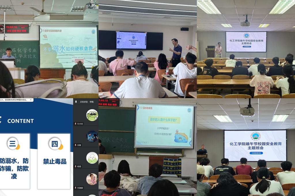 会后各班班主任组织各班分别召开安全班会,讲解端午节出行、防溺、饮食、反诈、宿舍管理、身心健康等注意事项,重点讲解防溺水专题教育。从预防溺水、溺水自救、科学施救三个维度系统讲解相关知识与技能。强调“六不准”原则,特别提醒非专业人员切勿擅自下水施救,应第一时间拨打110、120,并利用竹竿、绳索等工具辅助救援。强调离校学生严格履行请假手续,班委要做好离校同学行程报备工作,定期开展定位打卡掌握学生动态;临近期末和四六级考试,强调同学们要诚信应考等。
