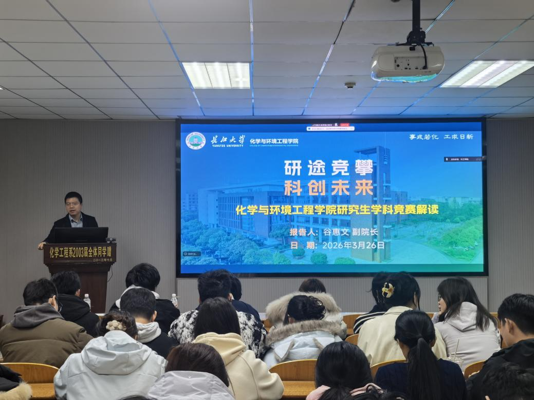 (通讯员 余海涛)为激发研究生科创竞赛热情、强化假期安全意识、落实学生管理责任,3月26日晚,yl8858永利集团化工学院在14教北201室召开研究生竞赛政策宣讲暨2026年清明节安全教育主题班会。会议由学院党委副书记杨会军老师主持,副院长谷惠文老师及全体在校研究生参会,校外联培研究生通过腾讯会议同步参会。