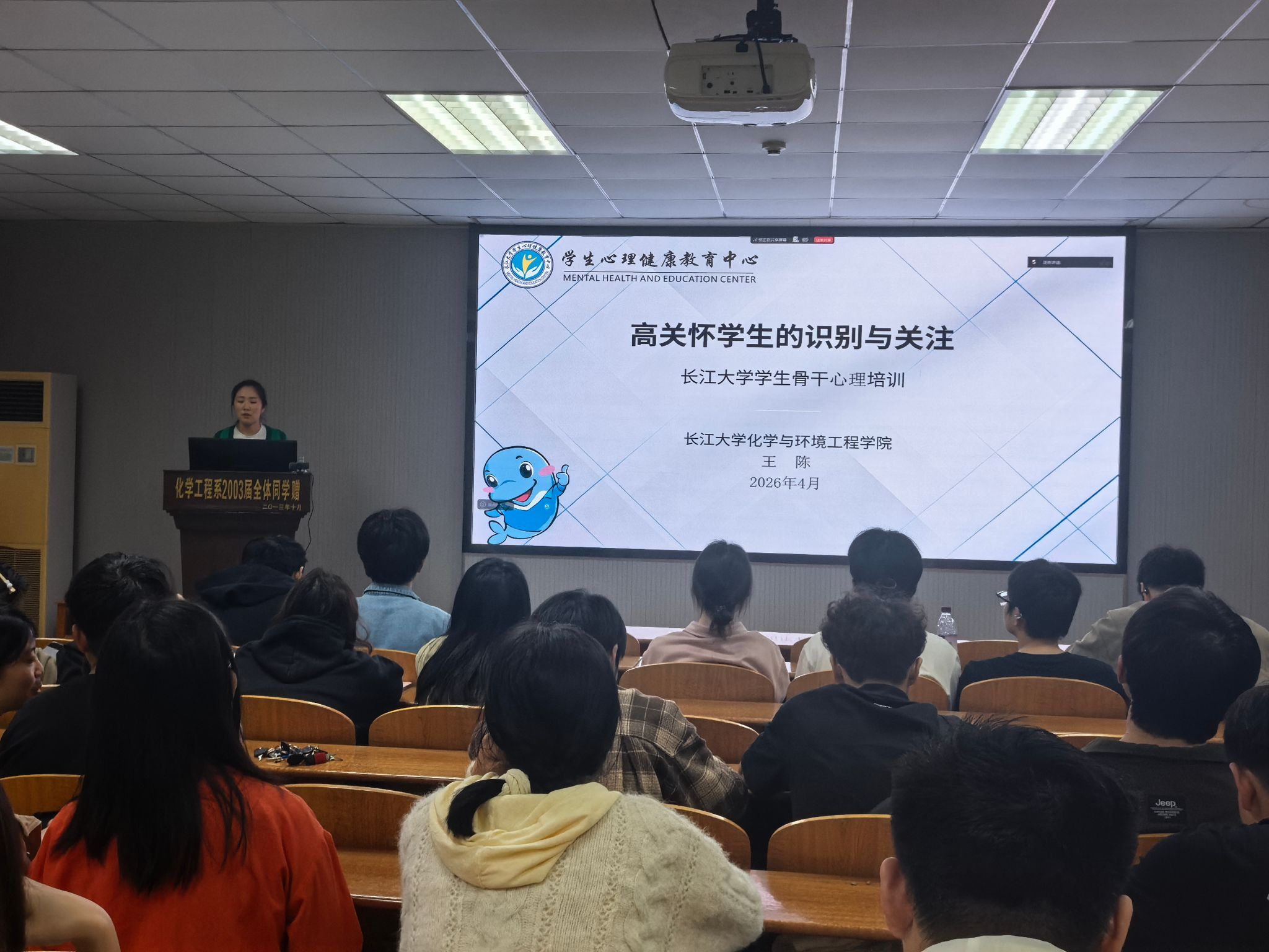 (通讯员 余海涛 王陈)为扎实推进学院心理健康教育工作,加强学生朋辈心理帮扶队伍建设,切实提升学生骨干心理自助、互助能力,筑牢学生心理健康防护屏障,化工学院于4月23日至4月28日,在东、西校区分四场开展2026年春季学期学生骨干心理教育专题培训。本次培训由徐茵、周学素、王陈三位老师主讲,全院本科生、研究生共530余名学生干部参与学习。