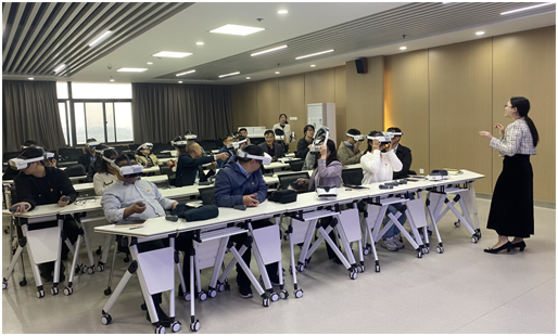 理论学习结束后,大家集体参观了马克思主义学院的VR实验室,通过VR技术“重走长征路”,通过各种互动交互体验翻越雪山、过草地、飞夺泸定桥等革命场景,让大家身临其境地接受一场叩问初心淬炼党性的精神洗礼,更加理解长征精神,感悟长征精神。