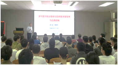 赵光教授向我院师生介绍了科研团队在多尺度冻胶分散体深部调驱技术领域取得的系列原创成果,阐述了冻胶分散体的制备理论与方法、地面成胶可控本体冻胶体系、工业化生产工艺、在线生产及注入一体化撬装装备、“冻胶分散体”协同增效体系、深部调驱机理以及典型矿场应用等内容。此次学术讲座开拓了同学们的研究思路与科研视野,对开展油气田应用化学与提高采收率等相关研究具有重要指导意义。