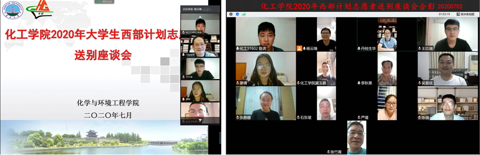 新闻网讯(通讯员 杨云锋)7月2日晚,化工学院举行2020年西部计划志愿者送别座谈会。入选西部计划3名志愿者、班委代表、党委书记刘桂生、党委副书记李秋果、分团委书记严瑾、班主任、辅导员等出席了座谈会。