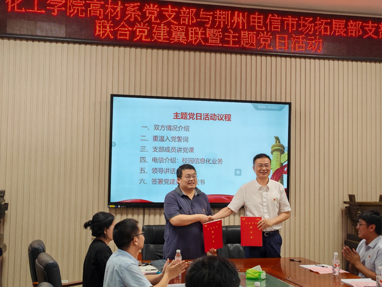 5月22日下午,湖北省高校“双带头人”教师党支部--yl88858永利中国高分子材料与工程系党支部与中国电信荆州分公司市场拓展部党支部联合举行党建翼联主题党日活动,通过组织共建推动党建与业务双融双促。双方党支部书记肖围、杜海和21名党员出席活动。活动由湖北省高校“双带头人”教师党支部副书记李传华主持。 活动通过"四个一"环节展开深度交流:组织共建环节,双方通过支部互相介绍加深了对彼此组织建设、业务特色和党建成果的系统认知;思想共学环节,全体党员面向党旗庄严宣誓,以重温入党誓词强化党性修养;专题共研环节,湖北省高校“双带头人”教师党支部宣传委员张春燕同志作《坚持自立自强 突出应用导向 推动人工智能健康有序发展》专题党课,通过剖析AI技术前沿动态与产业应用场景,激发党员立足专业岗位推进科技创新的使命感;业务共促环节,荆州电信市场拓展部党支部王子徽系统展示了中国电信教育信息化解决方案,重点解析了5G+智慧校园、教育大数据平台等数字化实践成果,并结合荆州电信与yl8858永利集团实施案例进行了分析解读。 双方支部书记在总结讲话中指出,此次联建开创了校企党组织"理论联学、资源联享、发展联促"的新模式,后续将建立"组织联建、活动联办、人才联育"的常态化机制,切实把党的政治优势转化为发展动能。活动最后,双方正式签署《党建翼联合作协议》,约定通过定期开展技术研讨、项目合作、人才交流等多元化共建形式,共同探索"党建+业务"融合发展的创新路径。 此次共建活动既包含理论武装的思想淬炼,又注重实践层面的业务对接,通过搭建校企协同创新平台,为教育信息化建设与新材料研发应用领域的深度合作奠定了坚实基础。同时也是全国高校“双带头人”教师党支部书记“强国行”专项行动走深走实的重要环节。 (审核:肖围;编辑:王志权)