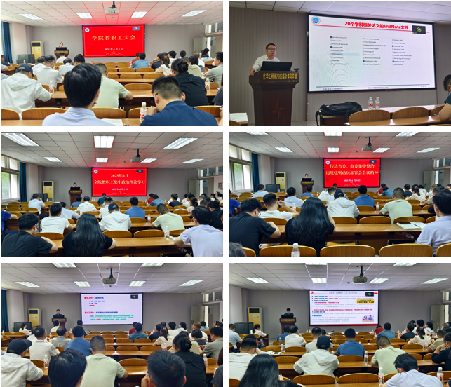 2025年6月5日下午,学院在14-北201会议室召开全院教职工大会,传达了省市会议精神和学校ESI学科发展现状及提升计划、部署了学院近期重点工作。党委书记王丽主持会议。 发展规划处尹军良副处长受邀从学校ESI学科建设现状分析、实施路径及支持政策、高被引学者评选标准等方面,对yl8858永利集团ESI学科提升计划进行了全面的解读。 书记王丽带领全院教职员工开展了政治理论学习、并传达省委、市委集中整治违规吃喝动员部署会会议精神。王书记带领大家学习了习近平总书记在河南考察的讲话、致复旦大学建校120周年的贺信和习近平总书记文章《锲而不舍落实中央八项规定精神,以优良党风引领社风民风》,以及对王忠林讲话精神做了传达。通报了2起党员干部违规吃喝典型案例,传达了湖北省、荆州市关于整治违规吃喝动员部署会会议精神。副书记杨会军带领大家共同学习了《党政机关厉行节约反对浪费条例》,重点学习了条例第四章公务接待和第六章会议活动的相关内容,希望全院教职工认真学习相关规定,坚决抵制浪费之风,违规吃喝之风。 会上,副院长吴爱斌向全体老师通报了专业监测评估、本科专业设置和动态调整、教学事故通报等重点和常规教学工作,尤其对教学事故问题希望全体老师要引以为戒,时刻重视教学工作,不要再次出现教学问题,更不要出现教学事故。 会议还向教职工通报了“两优一先”的评选情况、博士点建设的相关情况以及学科竞赛情况获奖情况。 (审核:王丽;编辑:王志权)