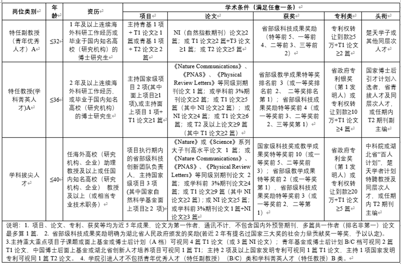 (二)各岗位基本条件(简易版、具体条件以学校相关文件为准)