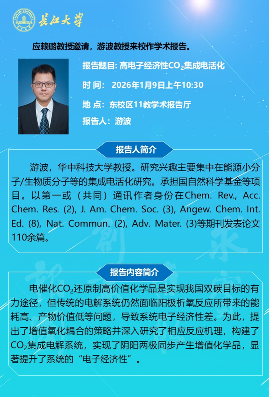 长江化工讲坛:高电子经济性CO2集成电活化