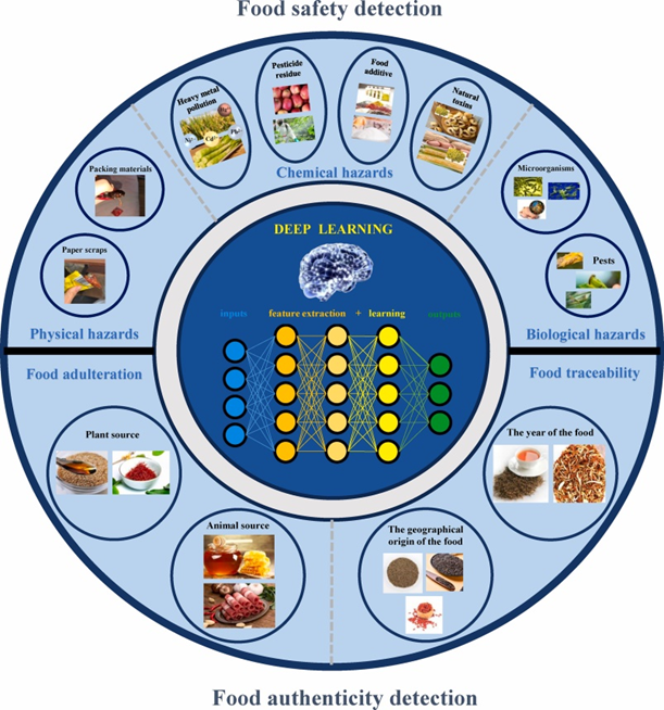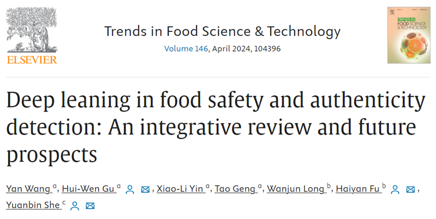 近日,我院谷惠文副教授课题组在国际食品科技领域顶级期刊《Trends in Food Science & Technology》(IF=15.3,中科院一区Top期刊)上发表了题为“Deep leaning in food safety and authenticity detection: An integrative review and future prospects(食品安全与真实性检测中的深度学习:综述与展望)”的综述性论文。我院材料与化工专业2022级硕士研究生王炎同学为论文第一作者,硕士研究生导师谷惠文副教授为论文第一通讯作者,yl88858永利中国为论文第一作者单位及第一通讯作者单位。
