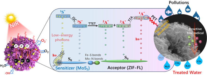 光催化技术是实现太阳能高效转化与污染物降解的重要途径,但传统体系多依赖高能紫外或可见光,低能近红外光因能量不足难以驱动光催化反应。部分研究尝试利用光热效应来促进反应,但这类方式本质上属于热催化或光-热耦合过程,并非真正意义上的基于半导体光电特性的光催化。因此,如何将低能光子有效转化为可驱动化学反应的高能激发态电子,仍是光催化领域的核心挑战。