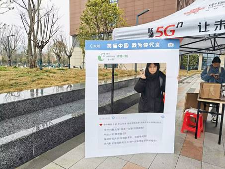 活动当天,现场布置井然有序,同学们踊跃参与,有的领取绿植,有的写下自己对环境保护的见解与呼吁,并将明信片投入收集箱中;打卡拍照区前,大家纷纷与环保标语合影,通过社交媒体分享活动瞬间,让绿色环保理念广泛传播。线下沉浸式体验让同学们在实践中感受环保意义,强化责任担当。